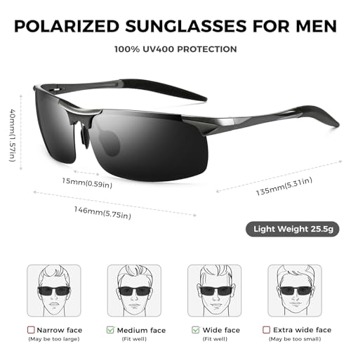• 😎Perfectly Sized for Everyday Wear: Lens dimensions: 68mm width × 40mm height; Nose bridge: 16mm; Temple length: 126mm; Frame length: 144mm. Designed to fit extremely face shapes comfortably and securely without sacrificing style, making these sunglasses men love to wear.
