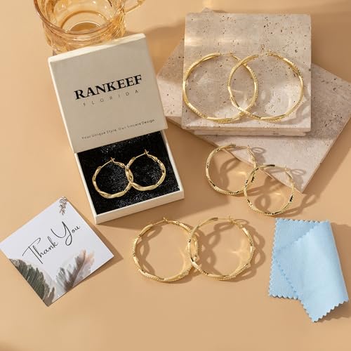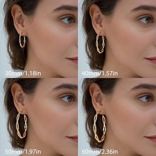 RANKEEF Gold Hoop Earrings for Women Hypoallergenic Lightweight Twisted Hoop Earrings 14K Real Gold Plated Earrings 30/40/50/60MM