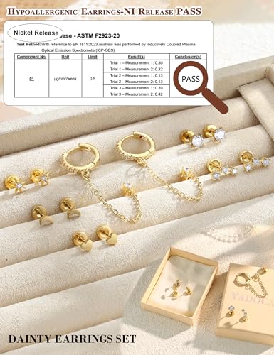 • [ Flat Back Earrings Hypoallergenic Surgical Steel ]Crafted from high-quality 316L stainless steel and 14K gold-plated copper,embedded 5A+ sparkling cubic zirconia, Tarnish at no charge lead free nickel free cartilage earrings for women sensitive ears. Smooth surface, rust-resistant, made to last. You will definitely be pleasantly surprised when you see these dainty earrings for women.