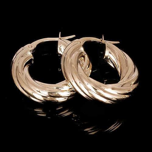 • ELEGANT PIECE OF JEWELRY - Elegantly created in brightly polished genuine Italian 14k gold, these elegant hoop earrings with a spiraling twisted design, are attractive as well as light weight. The click-top posts secure these pretty hoops on the ears, snapping shut in the back as they swing gracefully when worn.