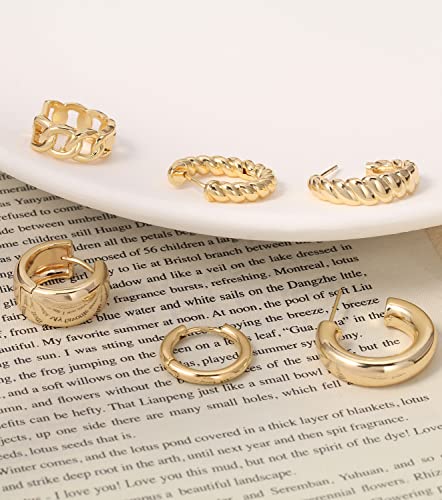 Gold Hoop Earrings Set 14k Gold Plated Huggie Earrings Hypoallergenic Chunky Thick Jewelry for Multiple Piercing Christmas Gift for Womem 7