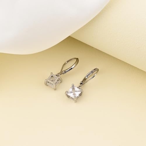 Cubic Zirconia Earrings Princess Cut Leverback Earrings Silver Dangle Earrings Drop Earrings Bridesmaids Earrings Diamond Earrings for Women 1