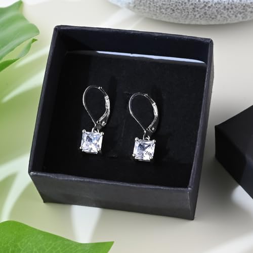 popular ! Cubic Zirconia Earrings Princess Cut Leverback Earrings Silver Dangle Earrings Drop Earrings Bridesmaids Earrings Diamond Earrings for Women