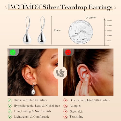 • ❤Quality Material❤Made of brass and silver, secured with lever-back, this eye-catching tear drop earrings are handmade,hypoallergenic for sensitive ears, plated with real silver finish, won't turn your ears green.