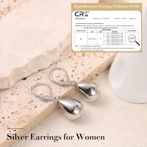 Silver/Gold Teardrop Earrings for Women,Sterling Silver Waterdrop Tear Drop Dangle Earrings Hypoallergenic, Teardrop Leverback Dangle Earring Jewelry 4