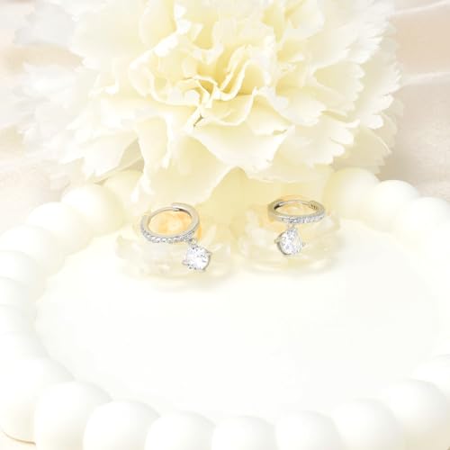 Hoop Earrings with Dangle Round - Sterling Silver Huggie Hoop Earrings for Women Trendy Hypoallergenic Small Loop Earring with Dangling Charm for Sensitive Ears Cubic Zirconia Fashion Jewelry Gifts