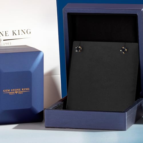 • ROUND BLACK SAPPHIRE GEMSTONES: Each stud features a 5MM round black sapphire, totaling 1.38 carats, offering a bold, timeless look with deep luster and striking brilliance for versatile everyday or evening wear.