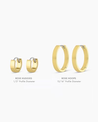 Material: Gold-plated-brassMetal type: Gold-plated-brassBack Finding: Hinged HoopEarring design: HoopGem type: No GemstoneTIMELESS ELEGANT DESIGN : The Rose Hoops feature a 3/16 profile diameter and 1/8 width. The classic and timeless design adds elegance to any outfit.VERSATILE FOR STACKING - Mix and match with other huggie hoop earrings and studs for a personalized look. These hoops are perfect for creating sleek combinations that reflect your unique style.SECURE HINGE CLOSURE - Enjoy all-day comfort and security with the surgical steel post and hinge closure. These earrings are designed to stay in place, providing a worry-free wear experience.GIFT BOX & JEWELRY BAG - gorjana jewelry comes in stylish packaging thatβs perfect for gifting or carrying your favorite pieces when traveling.18K GOLD PLATING DESIGNED TO LAST - This 18k gold plated piece is designed to last with proper care. gorjana's Happiness Guarantee ensures customer support to maintain the quality of your jewelry. Perfect for everyday use. first-class materials and excellent craftsmanship ensure long-lasting durability.
