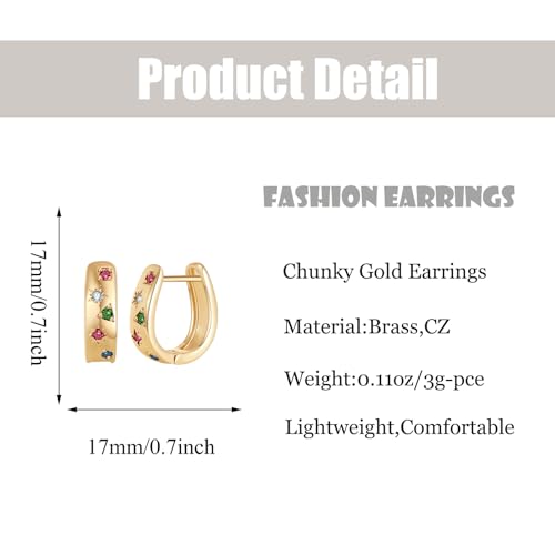 More information about Chunky Gold Cubic Zirconia Hoop Earrings for Women Trendy,Colorful Gold CZ Statement Earrings,Crystal Geomertic Earrings Jewelry Party