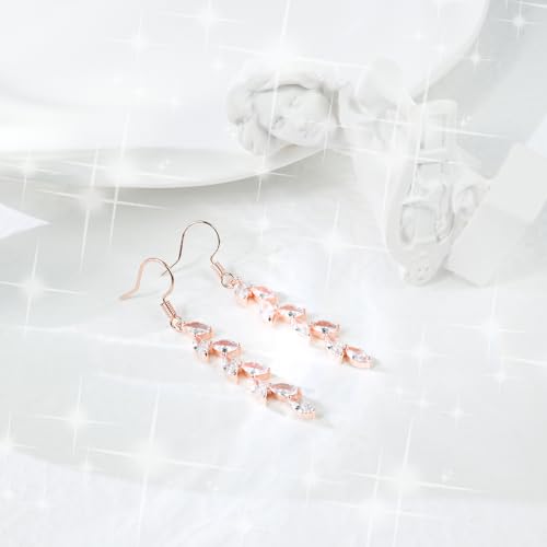 • [Leaf Earrings] Rose gold leaf earrings with marquise shaped shinny cubic zirconia stones in a leaf design, an elegant accessory for wedding, bridesmaid gifts, or for daily wear