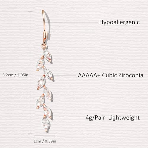 • [Suitable Size] The rose gold bridal earrings for wedding are suitable for highly women. The leaf dangle earrings is about 2 in high, 0.4 in wide, this length can shape your face. These leaf drop earrings are only 4g, which is lightweight and pleasant