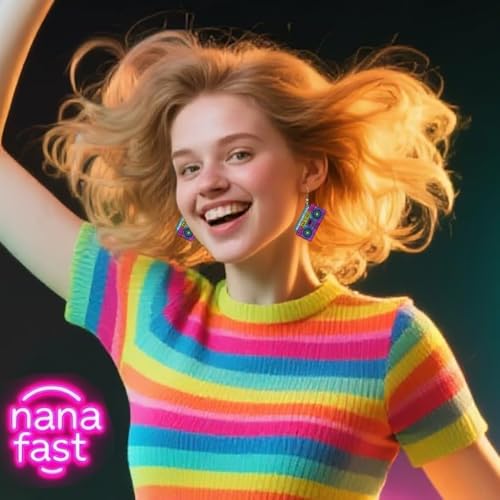 Nanafast 80s Earrings for Women Retro 90s Neon Acrylic Earrings Vintage Cassette Tape Style Jewelry 70s 80s 90s Outfits & Party Accessories for Women 5