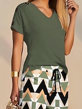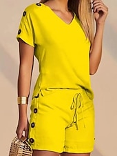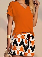 More information about Women's 2 Pieces Fashion Streetwear Daily Shorts Sets Short Sleeve V Neck Geometric Plain Drawstring Print Casual Daily Yellow Blue Orange Summer Regular Fit
