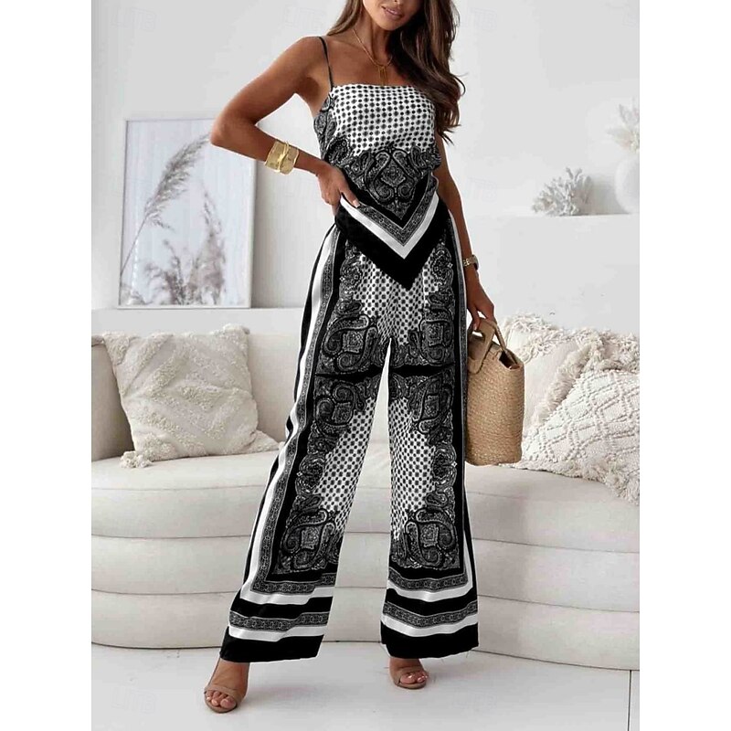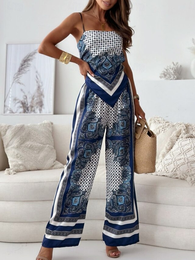 Why Choose Women's Fashion Streetwear Daily Camisole Wide Leg Pants Sleeveless Strap Floral Backless Print Casual Daily Black Navy Blue Sky Blue Summer Regular Fit?