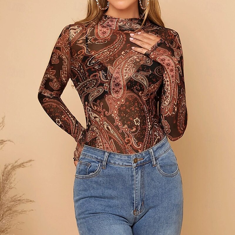 This Women's Boho Shirt Blouse Paisley Daily trendy Long Sleeve Crew Neck Regular Tops Daily Holiday Print Brown Summer Spring combines elegant design with practical functionality. Every detail has been carefully considered to ensure you get the best possible experience. The excellent construction means this product will serve you well for years to come.
