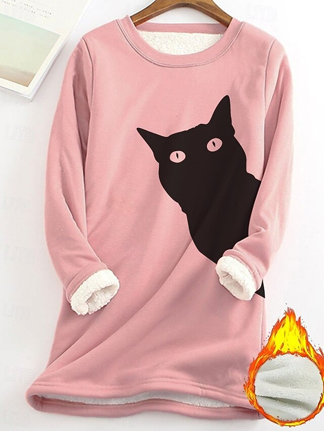 This Women's Pullover Sweatshirt Animal Cat Fashion Basic Casual Long Sleeve Crew Neck Long Tops Street Dailywear Casual Print Fleece Lined Black Pink Dark Pink Blue Fall Winter combines elegant design with practical functionality. Every detail has been carefully considered to ensure you get the ultimate possible experience. The finest construction means this product will serve you well for years to come.