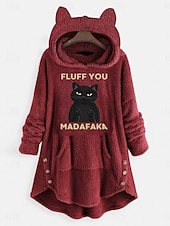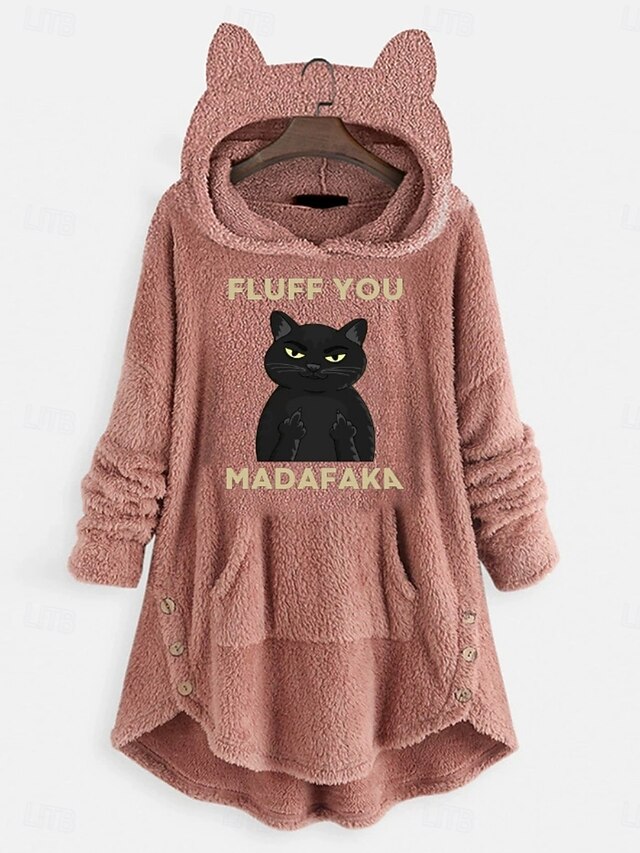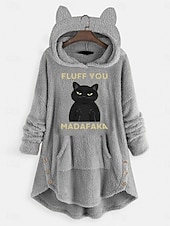popular ! Women's Pullover Hoodie Sweatshirt Cat Letter Casual Long Sleeve Hooded Crop Tops Street Dailywear Casual Pink Wine Gray Fall Winter