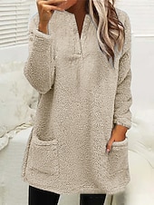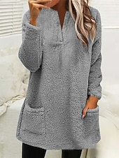 More information about Women's Sweatshirt Casual Sherpa Plain Street Dailywear Crew Neck Pocket Long Sleeve Pink Beige Gray Fall Winter