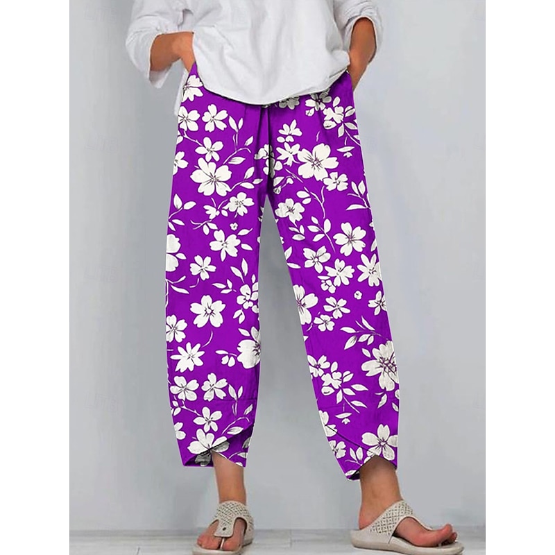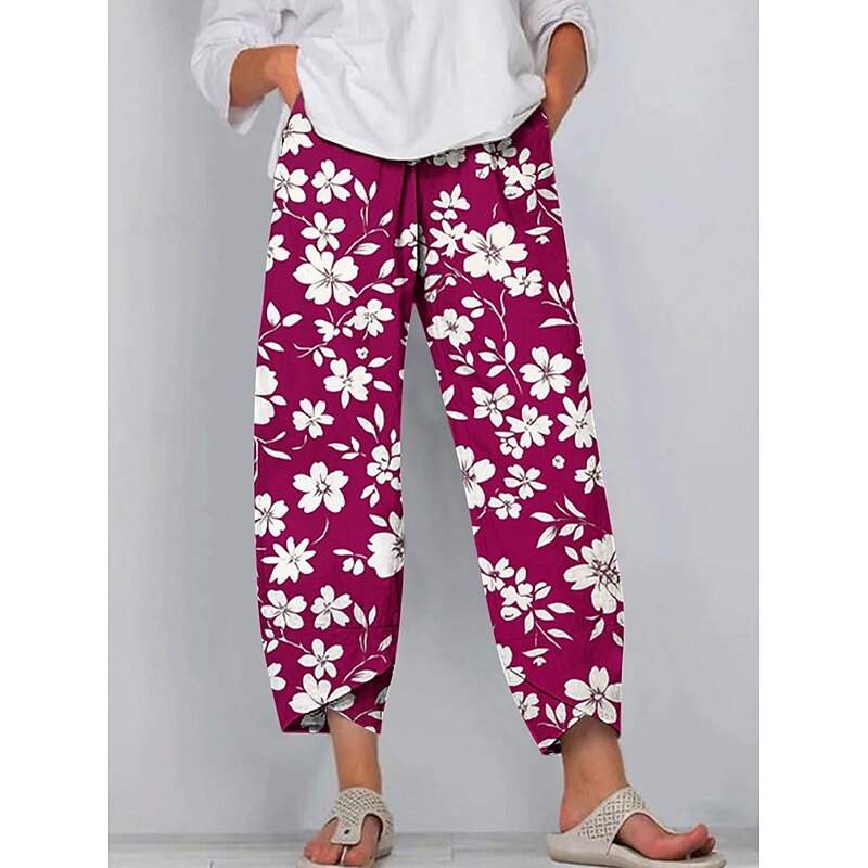 Why Choose Women's Chinos Baggy Pants Casual Ankle-Length High Waist Floral Graphic Drawstring Patchwork Printing Breathable Micro-elastic Casual Daily Black Red Blue Purple Summer Spring Loose Fit?