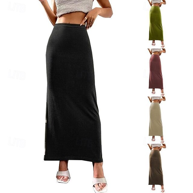 Why Choose Women's Skirt Bodycon Casual Maxi Mid Rise Skirts Plain Micro-elastic Vacation Going out Black Almond Pink Brown Fall Polyester?