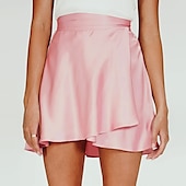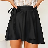 Highlights [Fabric] : Crafted from premium satin and polyester, this mini skirt offers a sleek, silky texture that ensures a luxurious feel and a subtle sheen, making it perfect for both sunny spring days and warm summer evenings. [Silhouette] : Featuring an A-line cut, this skirt provides a flattering fit that gently flares out to enhance ease of movement and all-day comfort. The high-waisted design adds an elegant and up-to-date touch to any outfit. [Design Highlights] : The skirt comes with a charming bow detail that adds a playful yet sophisticated accent to its solid-colored style. Available in a range of classic and vibrant colors—Black, Beige, Dark Green, Pink, Wine, and Black-White—this skirt elevates any ensemble effortlessly. [Occasions] : Ideal for a variety of occasions including vacations, holidays, daily outings, and even Mardi Gras festivities, this versatile skirt can be dressed up or down. Perfectly suited for casual settings or a more polished look when paired with the right accessories. [Size Range] : Available in sizes S, M, L, and XL, ensuring a comfortable fit for different body types and preferences. Perfect for everyday use. first-class materials and excellent craftsmanship ensure long-lasting durability.