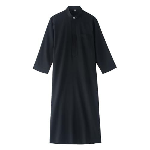 More information about Boys Muslim Kaftan Kids Prayer Clothes Ramadan Eid Outfits Long Sleeve Solid Color Stand Collar Thobe with Pocket