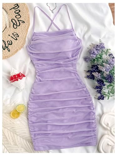 More information about Verdusa Girl's Criss Cross Backless Cami Dress Sleeveless Ruched Mesh Bodycon Short Dresses