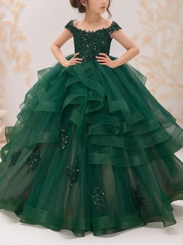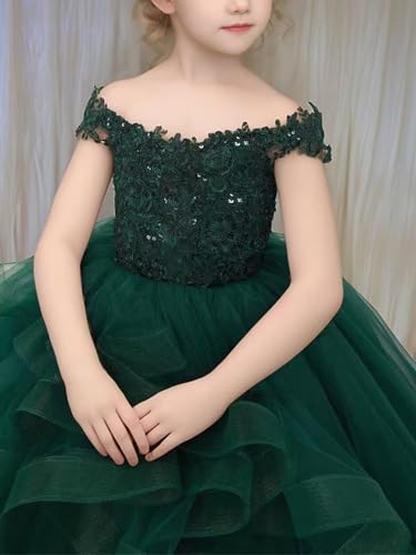 • Features:Gorgeous gentle tulle lace appliqued flower girls dress for wedding a-line junior bridesmaid dresses with train ruffle sleeve pageant prom dresses, children knee length birthday party dresses. Puffy, with train, floor length,embroidery,tiered,off the shoulder, sleeveless, empire waist, pleated, ruffle detailing, lace-up back.It looks so luxurious, elegant and charmingly cute that it will make your daughter an eye-catching star of the event and let your daughter reap more compliments!