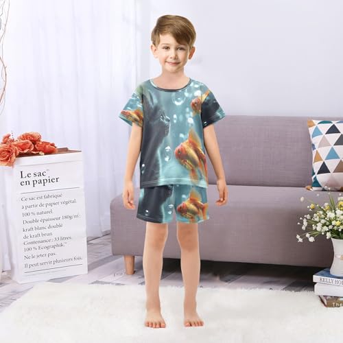 ALAZA Black Cat Fish Abstract Pajamas Set Short Sleeve Cotton Sleepwear Summer Pjs 2 Piece 5-14Y 2