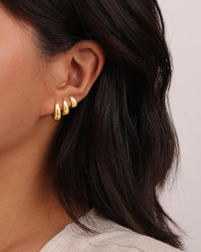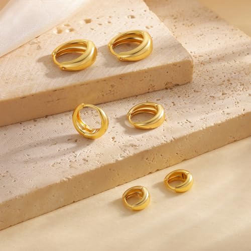 • Versatile: 3Pairs elementary design gold huggie hoop earrings set, minimalist and trendy. You can wear them alone or stack them with your other favorite earrings