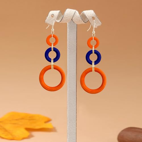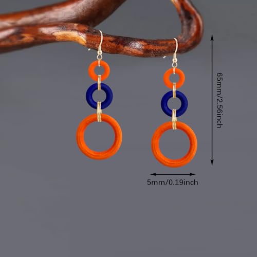 More information about Bohemian Handmade Natural Wooden Circle Round Hoop Splicing Hook Earrings Lightweight Retro Colorful Long Wood Geometric Dangle Drop Earrings for Women