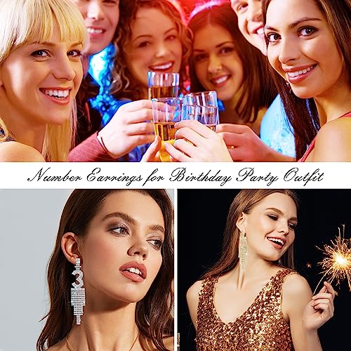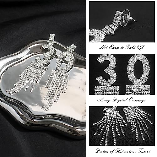• 💎【HIGH-QUALITY MATERIALS】Made from high-quality rhinestones, these 30th birthday earrings sparkle and shine with every movement, adding a touch of sophistication and glamour to any birthday party outfit. The silver material also adds an extra touch of elegance, making them outstanding for any woman who loves to make a statement.