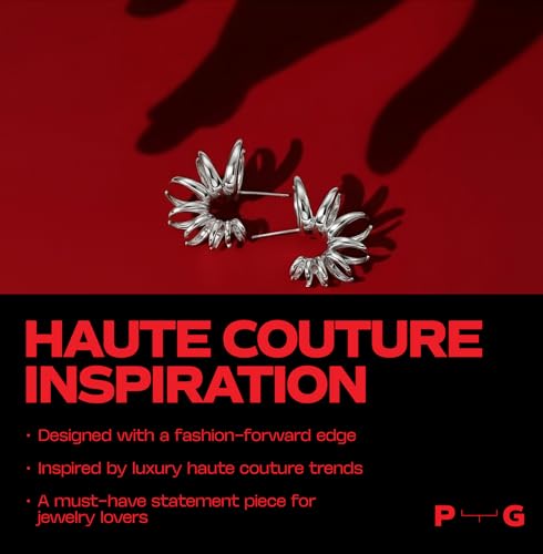 Item width: 17 millimetersMaterial: Silver, Stainless SteelMetal type: 22k / platinum platedBack Finding: Push BackEarring design: HoopGem type: No GemstoneBOLD, MODERN DESIGN: Our statement silver spike hoop earrings feature a stunning moon eclipse motif crafted from lustrous 22K platinum plating on 316L stainless steel, adding a touch of glamour to any outfit.SOPHISTICATED AND AVANT-GARDE: Our cool spike hoop earrings are designed for those who refuse to settle for simple and boring, embodying elegance and individuality.one-of-a-kind HAUTE COUTURE INSPIRATION: Each collection is inspired by haute couture, reflecting the latest fashion trends and artistic in fluences.LIGHTWEIGHT COMFORT: Designed with a lightweight construction, our spike silver hoop earrings offer comfortable wear throughout the day.HYPOALLERGENIC AND NICKEL FREE: Our chunky spike hoops are safe for sensitive ears, ensuring comfort all day longUS-BASED BRAND โ WOMEN-OWNED BUSINESS PUMP UP THE GEM is a proud women-owned business in the USA. Each piece is designed to empower you, combining bold style with elegance. Crafted with love and care, our jewelry brings Haute Couture fashion to you. Perfect for everyday use. supreme materials and excellent craftsmanship ensure long-lasting durability.