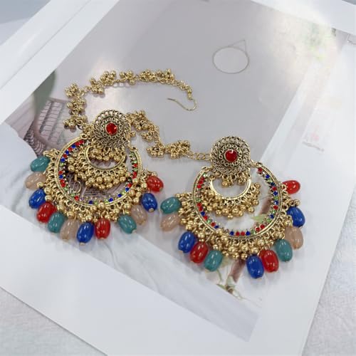 popular ! Colorful Beaded Indian Earrings for Women Gold Plated Cubic Zirconia Boho Tassel Dangle Earring Drop Chandelier Traditional Ethnic Gypsy Jewelry Bollywood Party Jhumka Festival Wedding Hair Accessory