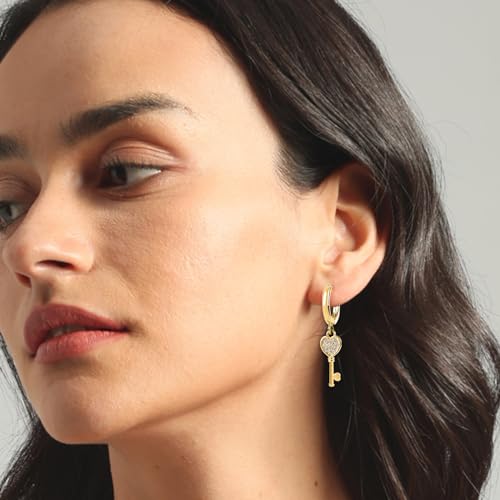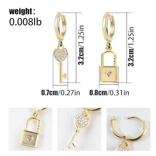 Material: BrassMetal type: BrassBack Finding: HoopEarring design: HoopGem type: No Gemstone๐๏ธ Chic design: The key lock huggie hoop earrings are designed with a unique small circle key lock design, combining modern fashion and vintage elements to bring you a unique charm. The delicate details and smooth lines show the designer's ingenuity, making you the center of fashion attention.๐ Durable & Shiny: To ensure the long-lasting luster and comfortable wearing feeling of the earrings, we use 14K real gold plating process, which guarantees the durability and oxidation-resistant ability of the metal. Each pair of key dangle drop earrings undergoes strict quality inspection to ensure that each product is a representative of top-grade.๐๏ธ sophisticated & Classic: The key lock dangle drop earrings are a blend of classic and fashionable, suitable for all occasions and styles. Whether it is casual fashion or formal occasions, it can easily show your elegant taste and unique style.๐ Suitable for all occasion๏ผThe gold tiny circle key lock earrings are the perfect match for any outfit, complementing a wide range of colors and styles. Whether you wear them with a simple shirt and jeans, or with a gorgeous dress, they will add sparkle to your look.๐๏ธ Perfect Gift: The tiny key lock hoop dangle earrings are not only a great choice for yourself, but also a perfect gift for your friends and family. Whether it's a birthday, holiday or anniversary, this exquisite gift will bring endless joy and surprise to the recipient. Perfect for everyday use. High quality materials and excellent craftsmanship ensure long-lasting durability.