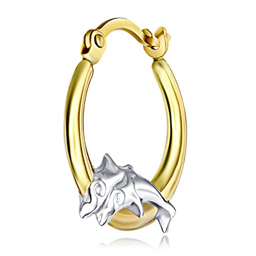More information about 14k REAL Two Tone Gold Fancy Dolphin Hoop Earrings (13mm Diameter)