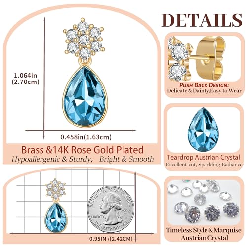 Elegant Austrian Crystal Teardrop Dangle Earrings for Women,14K Gold Plated Snowflake Drop Earrings Jewelry Gift for Birthday Wedding Anniversary 7