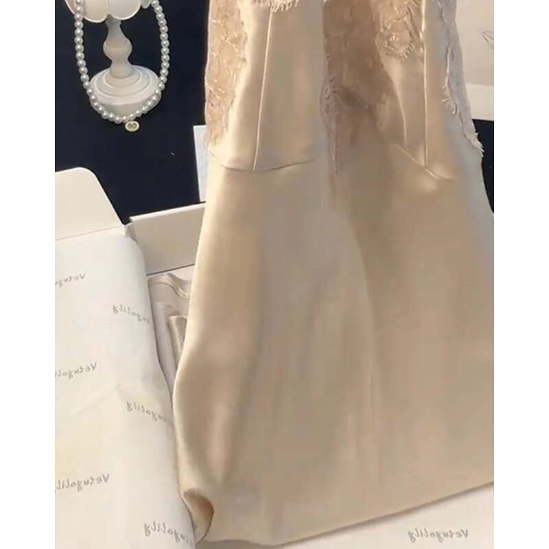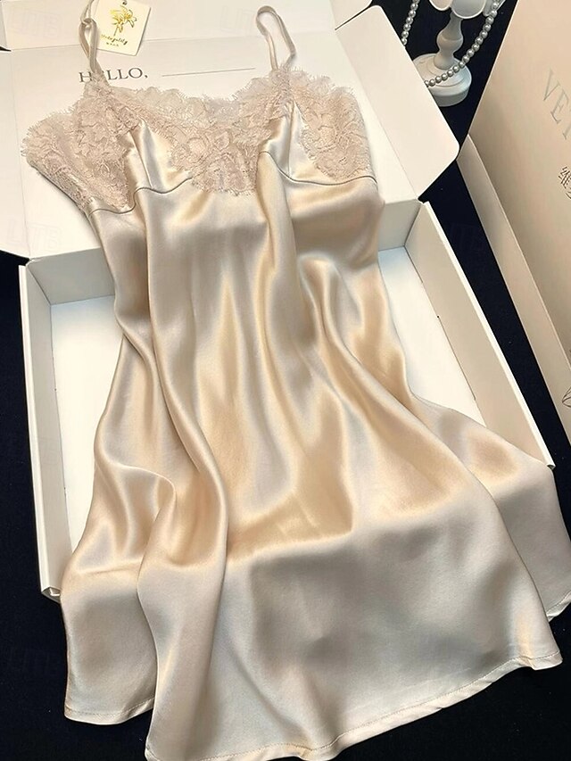 More information about Women's Pajamas Nightgown Fashion Sweet Pure Color Lace Patchwork Vacation Home Bed Sleeveless Straps Beige Summer