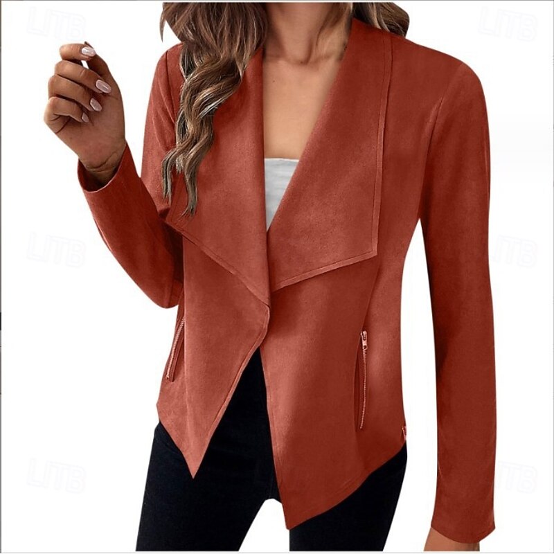 Why Choose Women's Jacket snug Zipper Open Front Vintage timeless Street Style Solid Color School Office Work Street Open Front Regular Lapel Regular Fit Long Sleeve Outerwear claret off white Navy Blue Spring?
