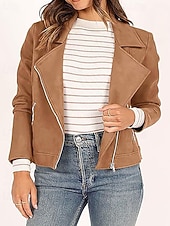 $41.99 - Women's Faux Leather Jacket Warm Comfortable Zipper Pocket Fashion Casual Plain Vacation Street Casual Daily Wear Short Turndown Regular Fit Long Sleeve Outerwear Black Navy Blue Camel Fall Winter 2025. Shop for cheap Faux Leather Jackets online? Buy at lightinthebox.com on sale today!