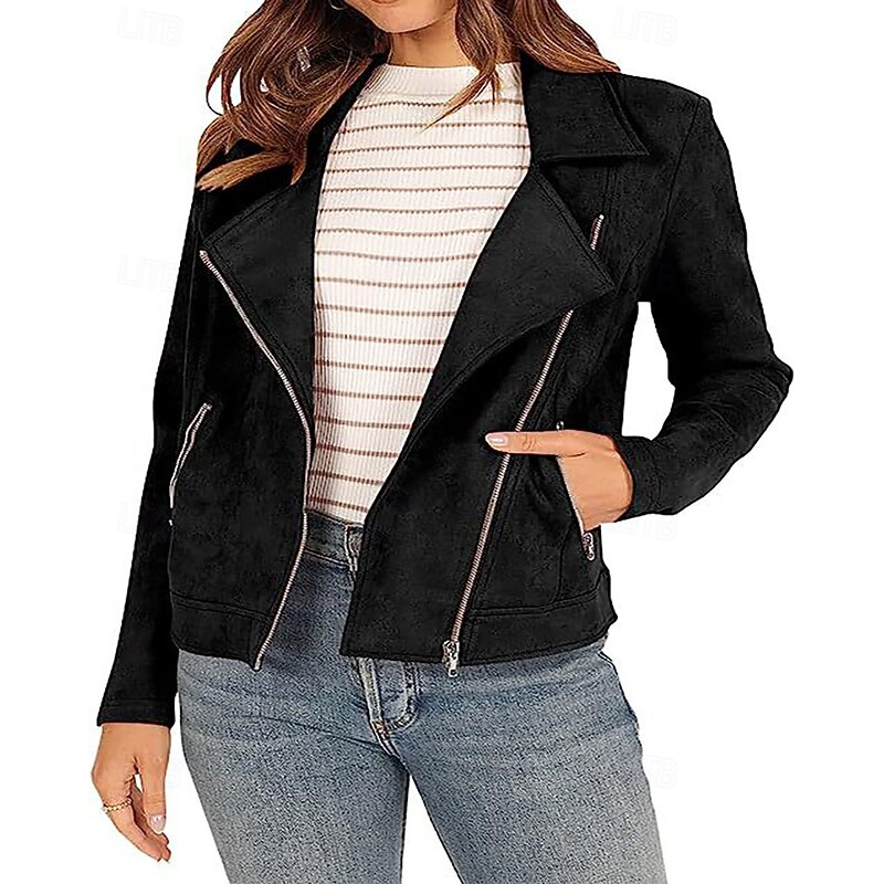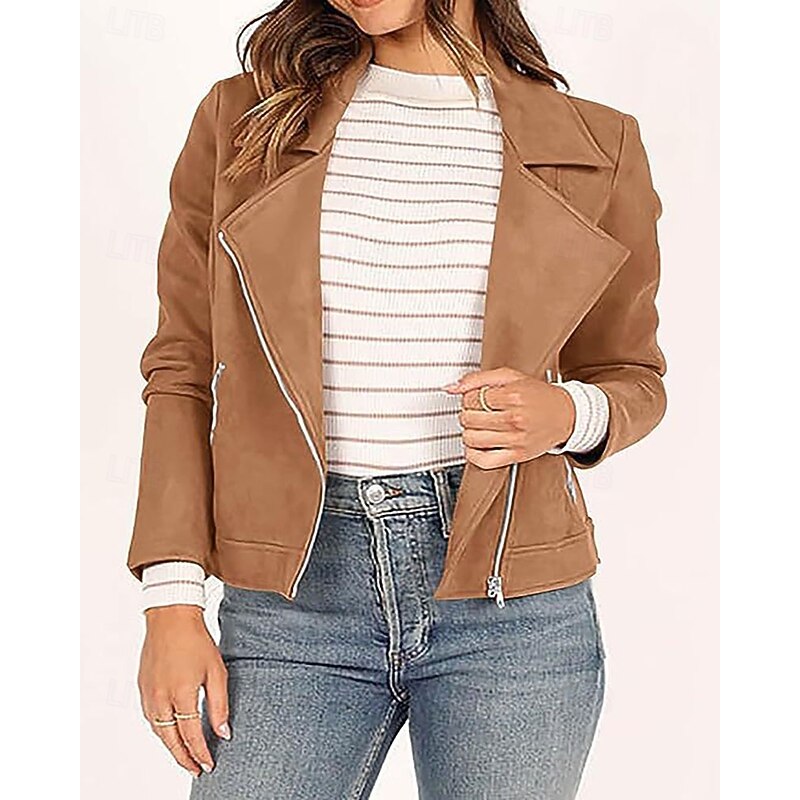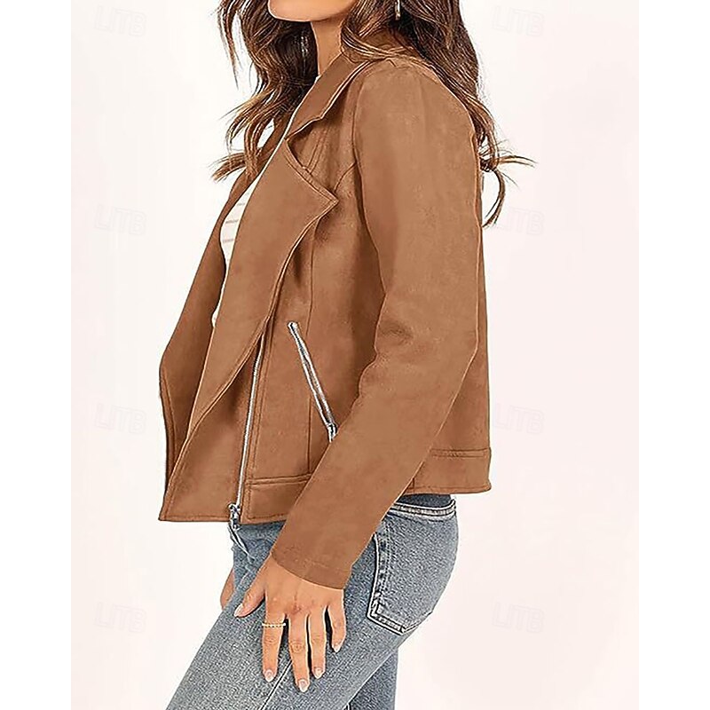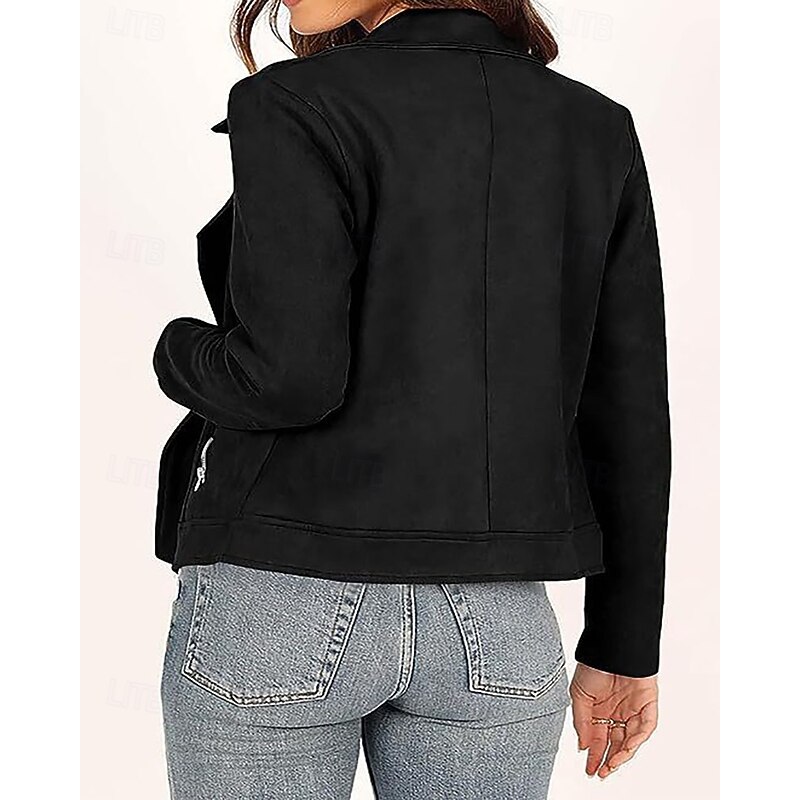 This Women's Faux Leather Jacket Warm soft Zipper Pocket Fashion Casual Plain Vacation Street Casual Daily Wear Short Turndown Regular Fit Long Sleeve Outerwear Black Navy Blue Camel Fall Winter combines elegant design with practical functionality. Every detail has been carefully considered to ensure you get the best possible experience. The finest construction means this product will serve you well for years to come.