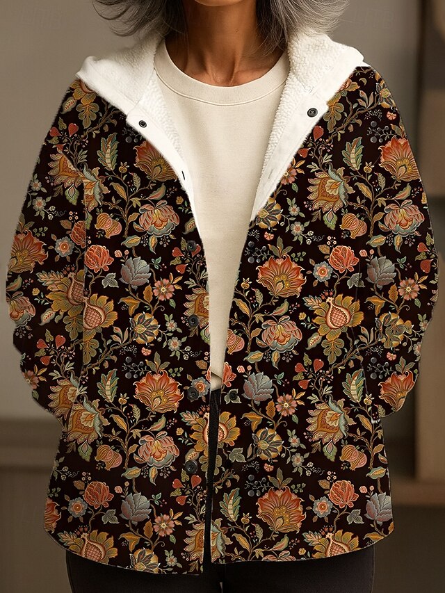 $55.99 - Women's Winter Coat Winter Jacket Fleece Jacket Windproof Warm Pocket Buttons Casual Floral Vacation Home Casual Daily Regular Hooded Regular Fit Long Sleeve Outerwear Pink Blue Orange Winter 2025. Shop for cheap Fleece-Lined Jackets online? Buy at lightinthebox.com on sale today!