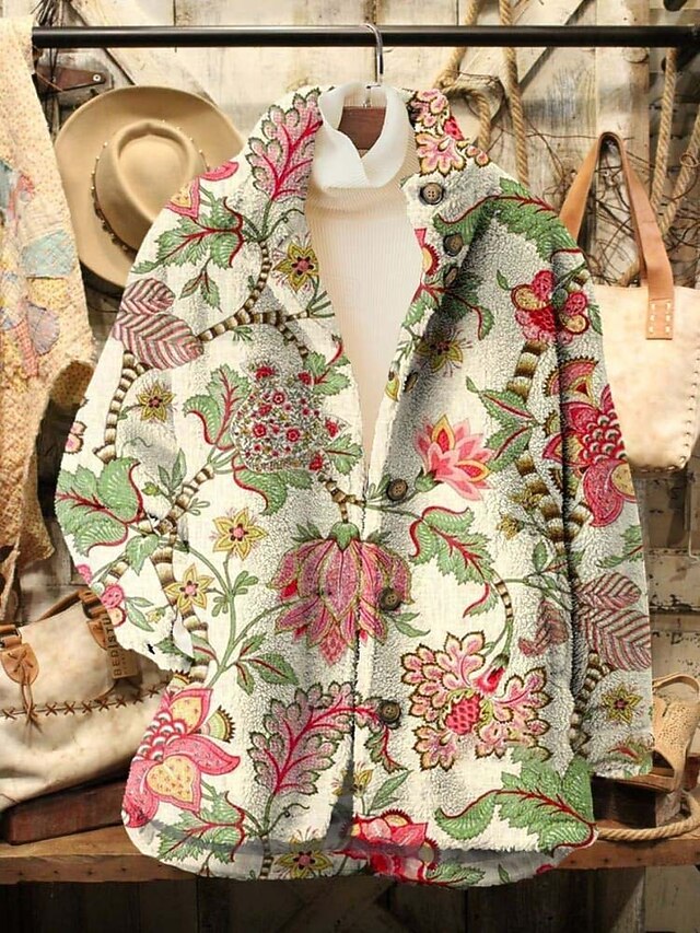 This Women's Fleece Jacket Casual Jacket relaxing Breathable Pocket Print Casual Floral Vacation Street Casual Daily Wear Zipper Long Turndown Regular Fit Long Sleeve Outerwear Blue Dark Green Green combines elegant design with practical functionality. Every detail has been carefully considered to ensure you get the best possible experience. The excellent construction means this product will serve you well for years to come.
