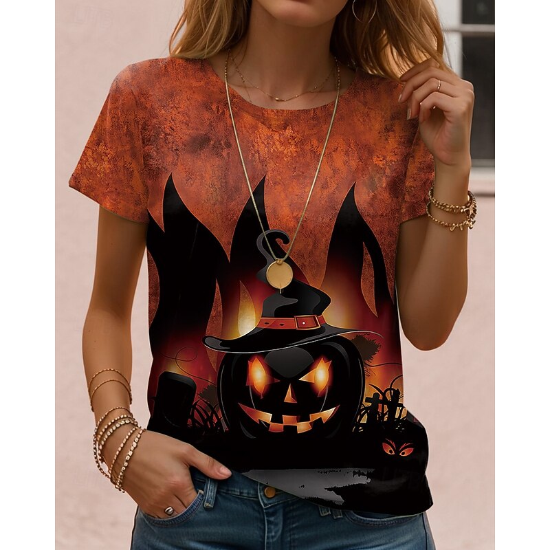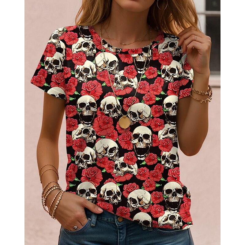 This Halloween Women's T Shirt Skulls Graphic Vintage contemporary Classic Short Sleeve Crew Neck Regular Tops Daily Weekend Print Black Red Light Brown Blue Orange Fall Winter combines elegant design with practical functionality. Every detail has been carefully considered to ensure you get the best possible experience. The finest construction means this product will serve you well for years to come.