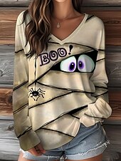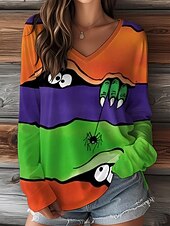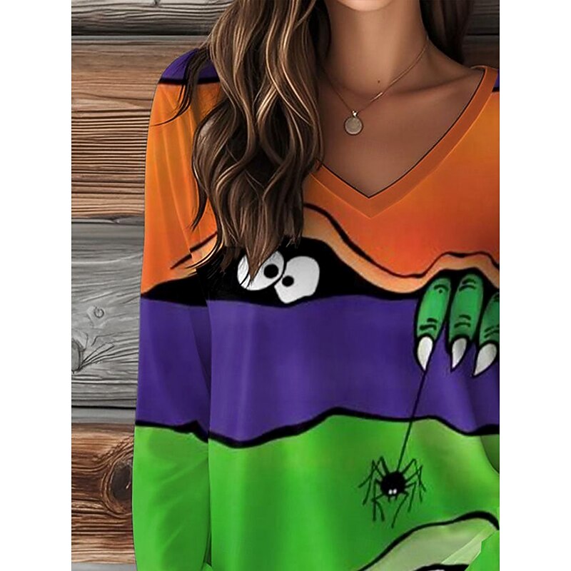 Why Choose Halloween Women's T shirt Monster Graphic Pumpkin Vintage sleek timeless Long Sleeve V Neck Regular Tops Daily Weekend Print Orange Khaki Fall Winter?