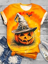 More information about Halloween Women's T shirt Witch Graphic Pumpkin Vintage sophisticated timeless Short Sleeve Crew Neck Round Neck Regular Tops Daily Print Black Yellow Red Summer Fall