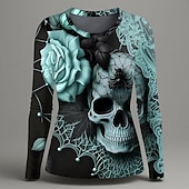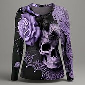More information about Halloween Women's T Shirt Graphic Skull Fashion Casual Long Sleeve Crew Neck Round Neck Regular Tops Daily Weekend Print Pink Blue Purple Green Summer Spring Fall