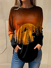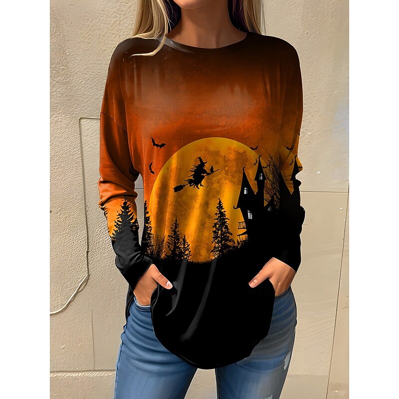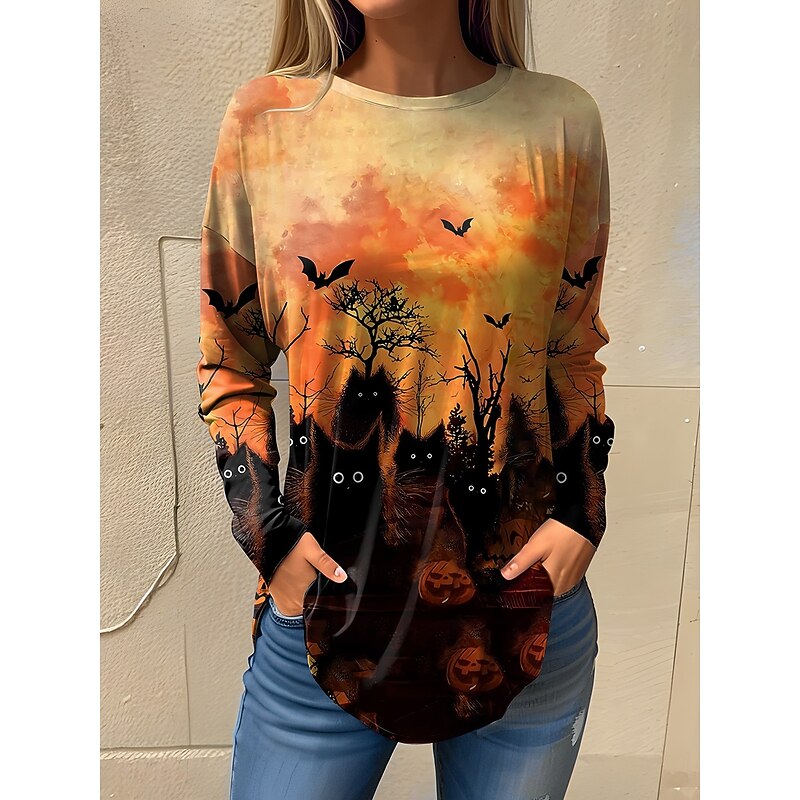 Why Choose Halloween Women's T shirt Ghost Long Sleeve Vintage Fashion contemporary Long Sleeve Crew Neck Round Neck Long Tops Daily Going out Weekend Print Maroon Black Yellow Blue Orange Spring Fall Prefall?
