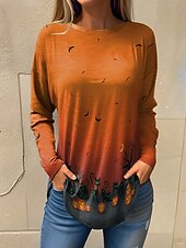 This Halloween Women's T shirt Ghost Long Sleeve Vintage Fashion sleek Long Sleeve Crew Neck Round Neck Long Tops Daily Going out Weekend Print Maroon Black Yellow Blue Orange Spring Fall Prefall combines elegant design with practical functionality. Every detail has been carefully considered to ensure you get the best possible experience. The finest construction means this product will serve you well for years to come.