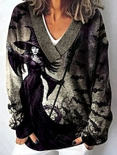 More information about Halloween Women's Cardigan Daily Casual Witch Graphic Skeleton Ribbed V Neck Buttons Print Long Sleeve Regular Tops Knit Outdoor Weekend Black Fall Winter